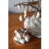 Vajíčka můžete zavěsit na rozkvetlou větvičku nebo je zavěsit na kruhový závěs (na věnec) nad jídelní stůl. Hezké budou i zavěšené na větvičce na zdi.